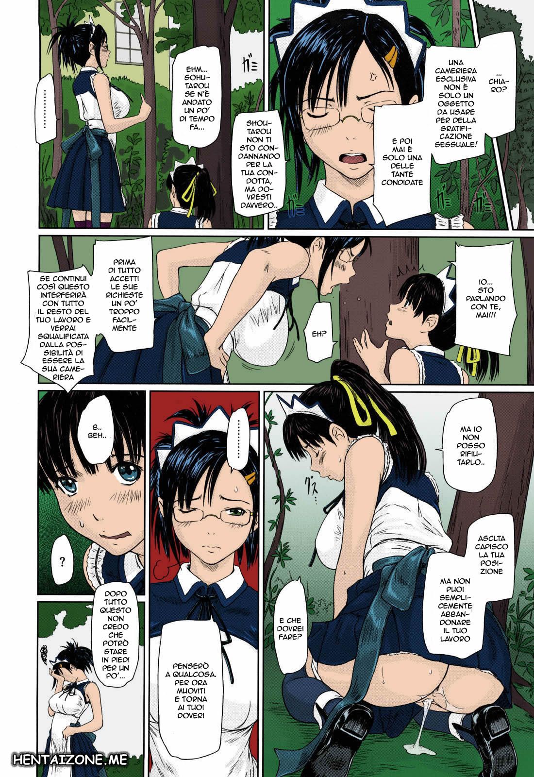 Una cameriera sporcacciona sveglia sempre il signorino con un bel pompino, questa è la sua natura, avere sempre un cazzo bello grosso e duro nella figa bagnata e depilata, i lavori di casa sono secondari l’importante e scopare in questo bellissimo hentai italiano manga porno ita con maid signori pecorine e tette grosse completamente full color